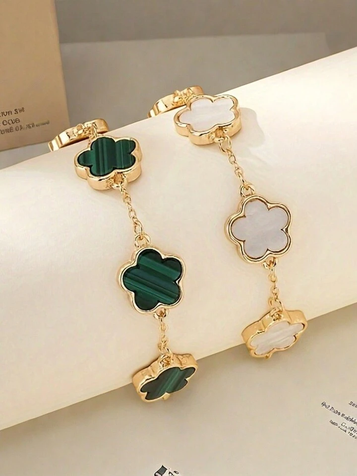 2 piece fashion classic style green and white lucky grass bracelet set quantity